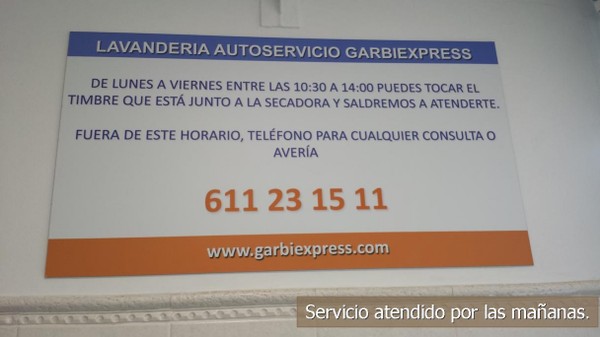 De lunes a Viernes de 10:30 a 15:00 (Recogida de ropa para coladas, servicio de tintoreria y recogida de alfombras)